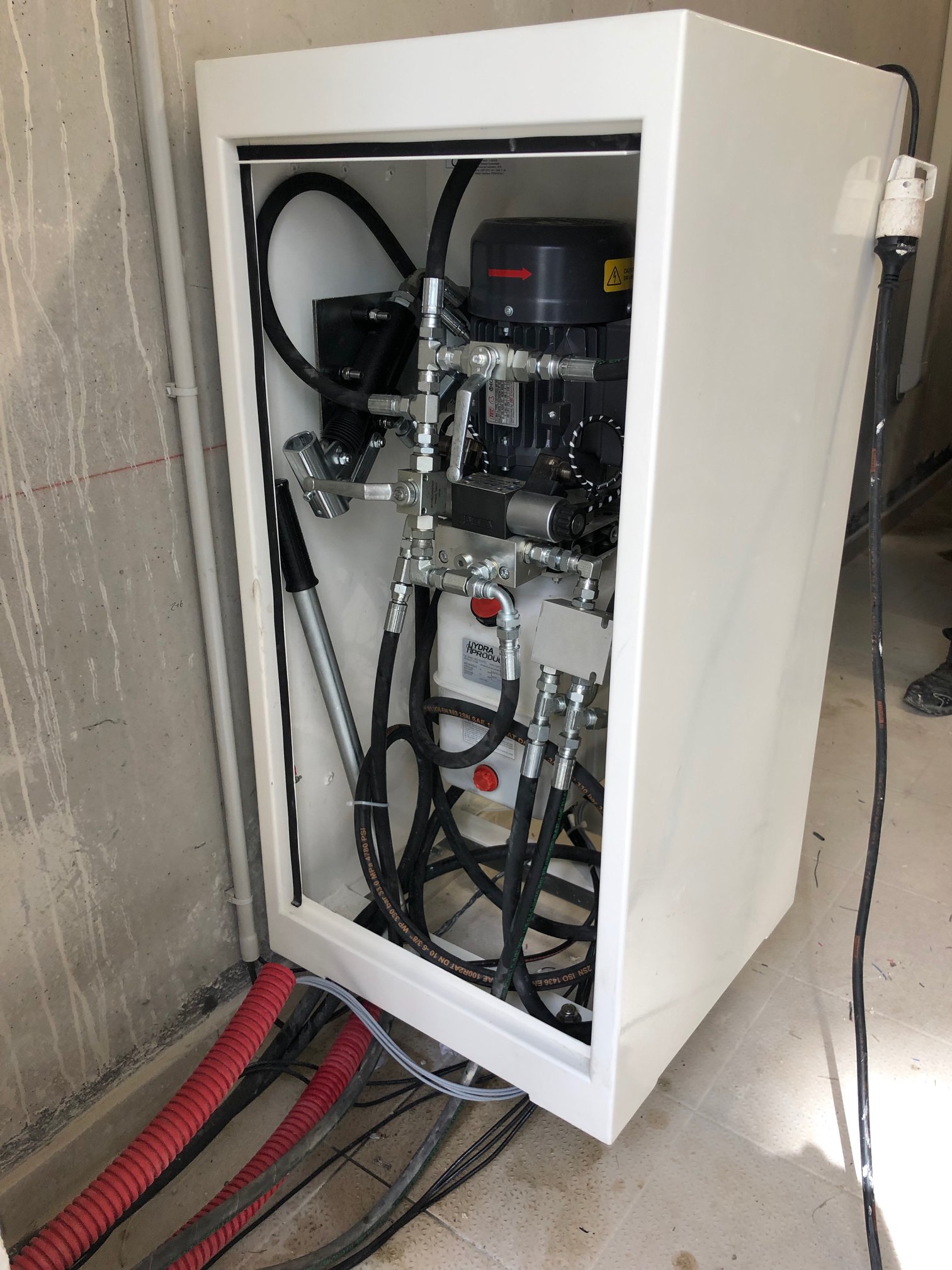 La borne escamotable automatique est constituée d’un fût de 246mm de diamètre et de 6mm d’épaisseur en acier hautement résistant. La surface de roulement et la plaque d’embase sont en acier larmé. Les bornes escamotables anti-vandale sont manœuvrées par des dispositifs hydrauliques situés dans un coffret de commande déporté.