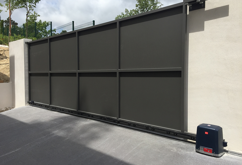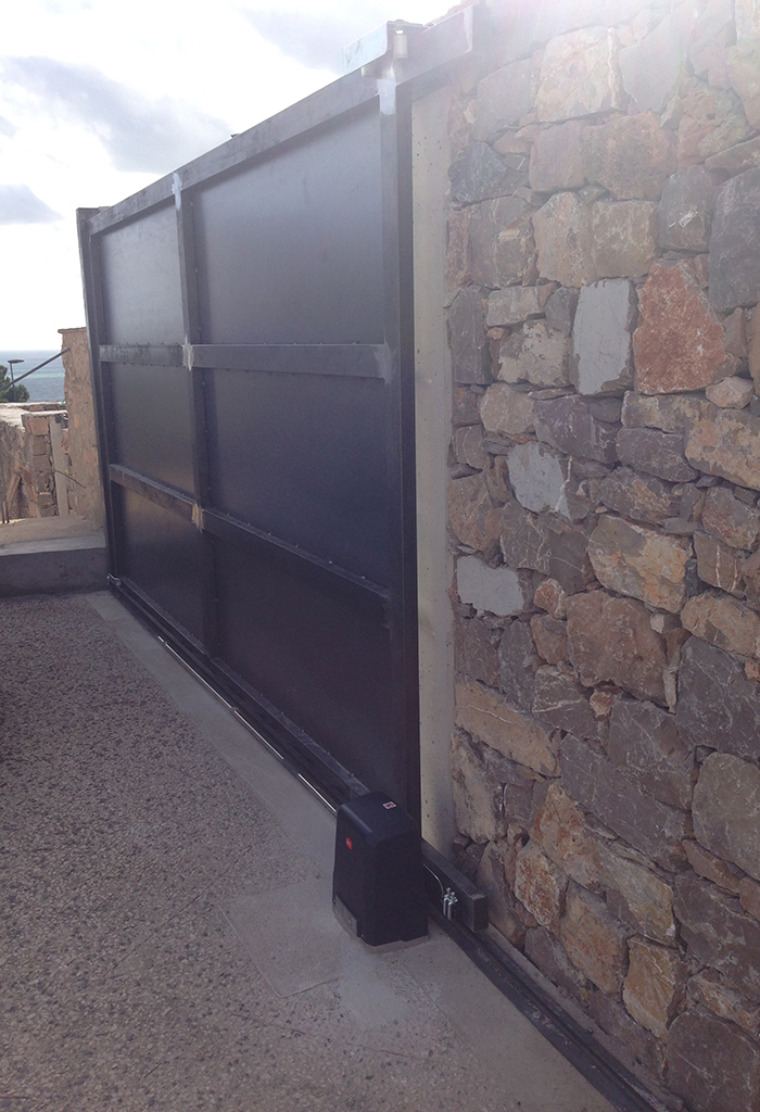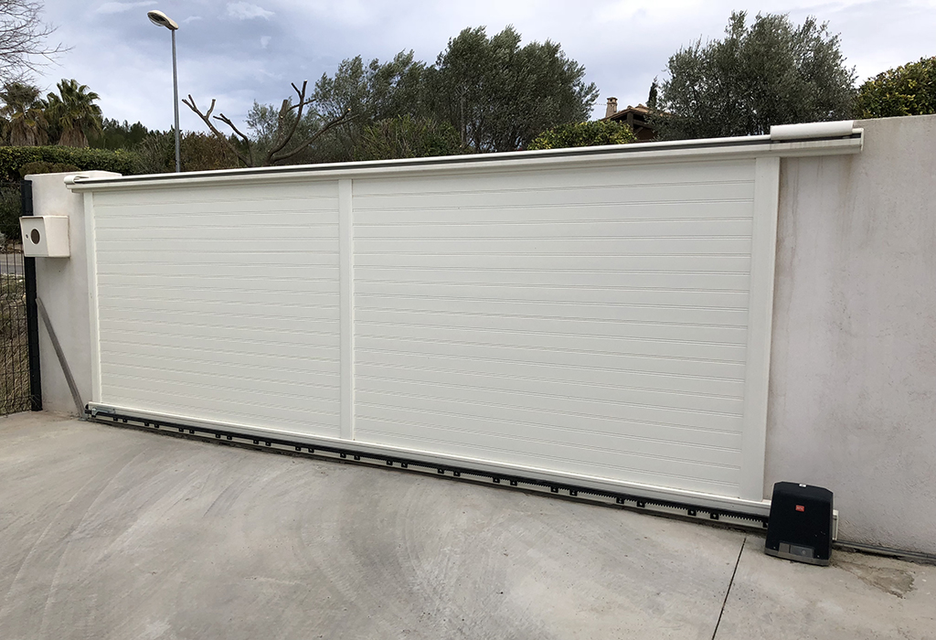 Les portails coulissants sont généralement constitués d’un seul vantail, qui coulisse sur un rail au sol, muni d’une crémaillère. Pour la manœuvre, le portail doit disposer d’un espace long et étroit pour coulisser dans la phase d’ouverture et de fermeture. Cette typologie de portails est la solution idéale dans le cas d’entrées de grandes largeurs, d’accès positionnés en montée ou lorsqu’il n’y a pas d’espaces de manœuvre suffisants à l’intérieur de la propriété pour l’ouverture de portails battants.